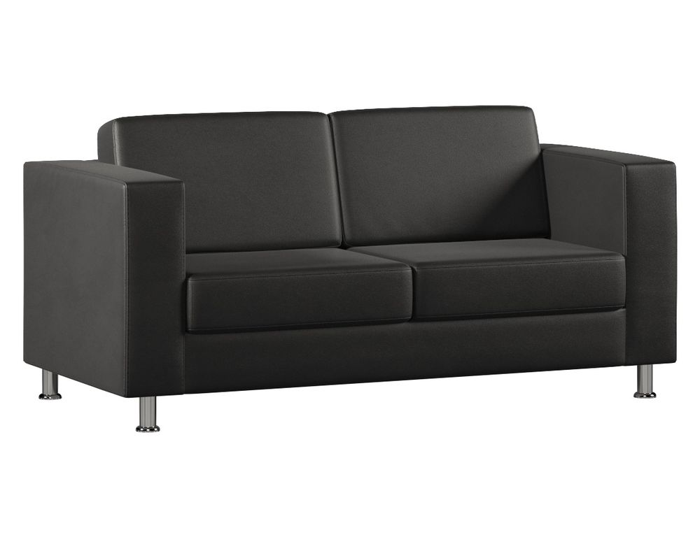 Каркас выполнен из прочных материалов — ДСП, ДВП и деревянного бруса, что гарантирует устойчивость и долговечность конструкции. В качестве наполнителя используется упругий ППУ марки ST 2536 и синтепон, благодаря чему посадка получается мягкой и удобной, но при этом сохраняется форма и упругость. Металлические хромированные опоры высотой 100 мм придают дивану для офиса лёгкость и современный облик, а также обеспечивают простоту уборки под мебелью.