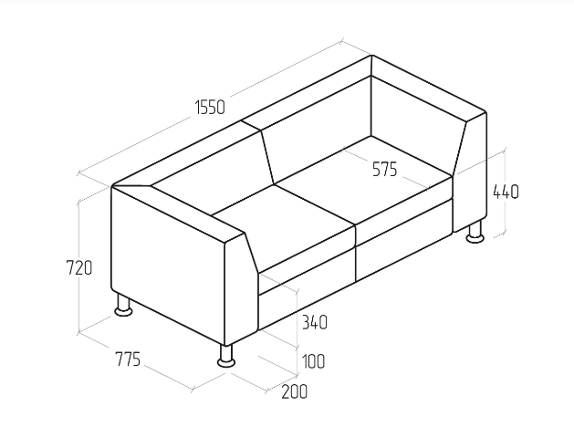 Хромированные металлические опоры придают модели лёгкость и современный характер, делая современный диван для офиса визуально изящным и устойчивым. Стационарная конструкция гарантирует надежность и простоту обслуживания, а оптимальная глубина и высота сиденья создают эргономичную посадку.