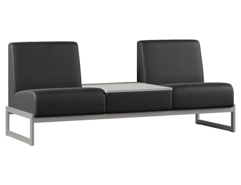 Диван Everprof Solo двухместный со столиком в центре Металл Серый Экокожа Черный ЛДСП Серый