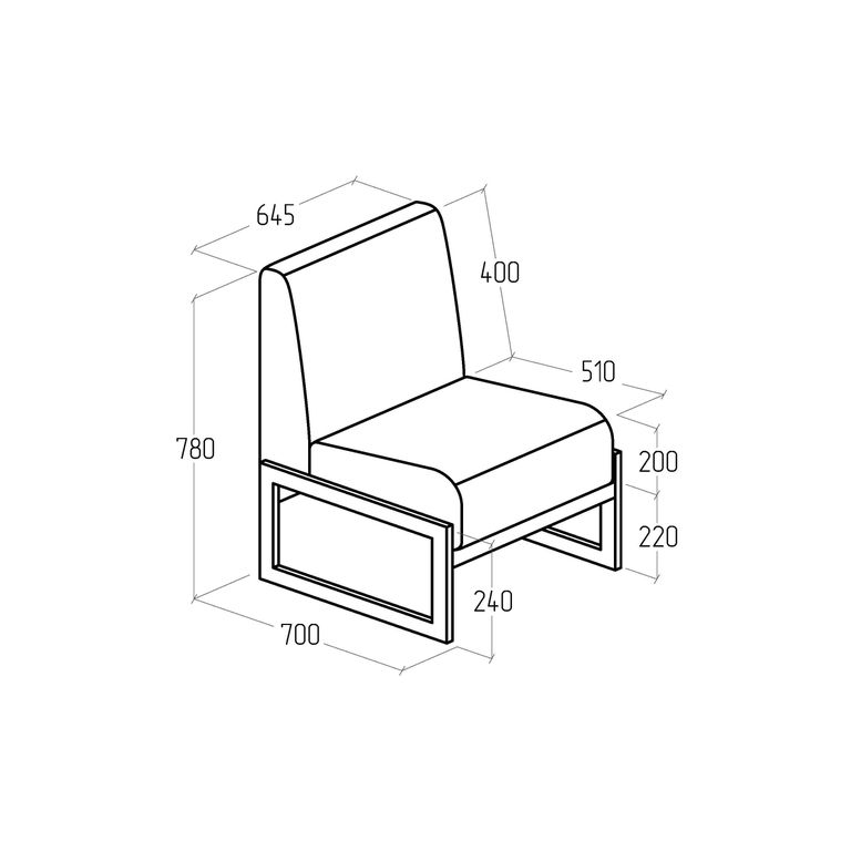 Размеры дивана компактны — длина 645 мм, ширина 700 мм, высота 780 мм, что делает его удобным для размещения в ограниченных пространствах.