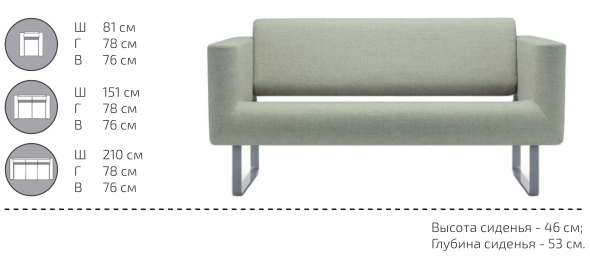 Диван Орбис М-23/2 - ультрасовременная и облегченная модель, на высоких металлических п-образных опорах. Лаконичный и, в то же время, футуристический дизайн мебельной группы предполагают её использование в различных зонах ожидания, холлах, интерьерах отелей и гостиниц, переговорных комнатах и офисах.