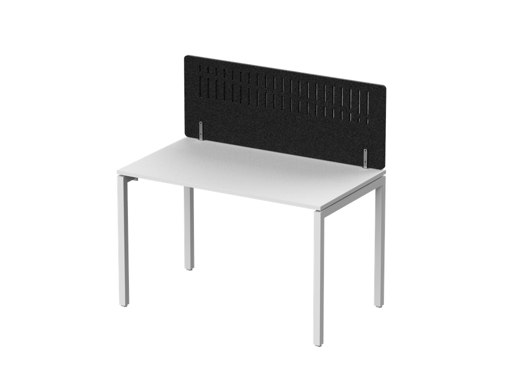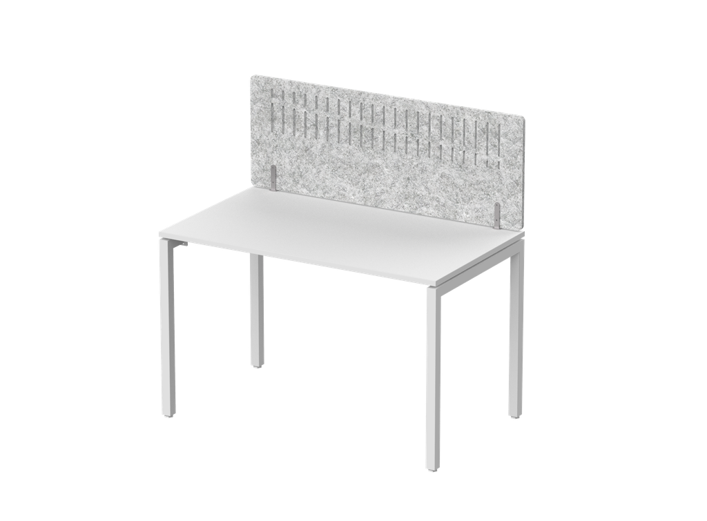 Начальный уровень акустического и визуального комфорта обеспечивают настольные разделительные экраны. Легкие, прочные и с доступной ценой, они легко устанавливаются на рабочее место и создают ощутимую локальную изоляцию. Настольные акустические экраны минимизируют шум, создавая звуковую и визуальную защиту на рабочем месте, при проведении видео конференции голос говорящего звучит намного лучше за счет снижения отражений и эффекта эха, помогают избежать визуальных отвлекающих факторов. При необходимости сохранять визуальный контакт с коллегами экраны выполняются с перфорацией. Обычно при перфорации нижний ряд отверстий имеет самый маленький размер и расположен на уровне или немного выше рта сотрудника при его нормальном расположении за рабочим столом.
