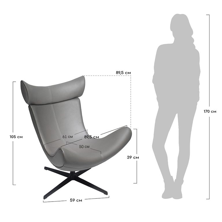 Материал: прессованная кожа, металл, пенополиуретан, пластик. Материал каркаса: металл, пластик. Материал наполнителя: пенополиуретан. Материал обивки: натуральная кожа. Максимальная нагрузка: 250кг. Размер: 89,5х89,5х105см. Высота сиденья: 39см. Глубина сиденья: 50см Поставляется в разобранном виде. В комплекте идёт инструкция и комплект аксессуаров для сборки.