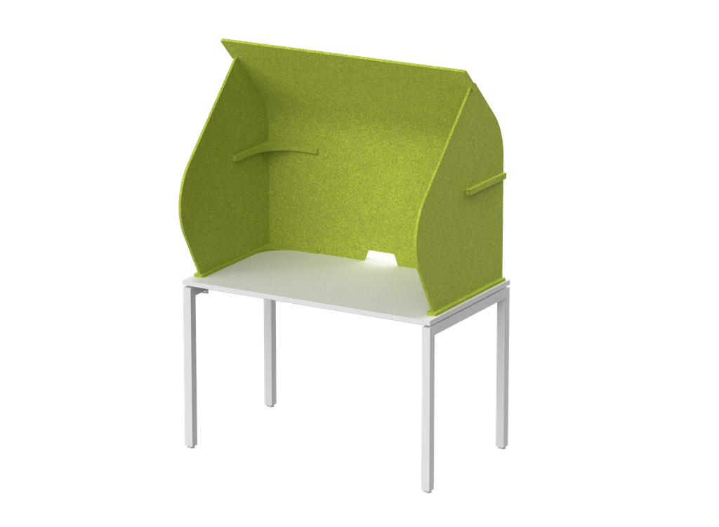 Если работа требует продолжительной концентрации, а в помещении много отвлекающих факторов, то изоляции в виде разделительных экранов становится недостаточно. В таких случаях рекомендуется использовать настольные акустические кабины, закрывающие рабочее место с трех или четырех сторон. Это серьезная защита от шума и отличный способ визуальной изоляции — рабочие места с акустическими кабинами фактически превращаются в отдельные кабинеты, а офис с такими кабинами становится очень необычным и стильным современным пространством.