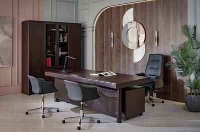 Элегантность столешницы со скругленными краями, мощное основание и использование натуральных материалов определяют высокий статус кабинета руководителя. Forte — это современная интерпретация классического кабинета со шпонированной поверхностью и рисунком натурального дерева на всех элементах кабинета. Строгий классический дизайн подчеркнет статус и индивидуальность руководителя.