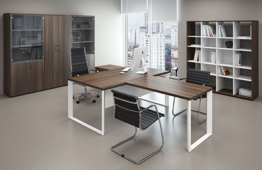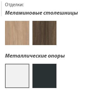 Оригинальное сочетание массивной столешницы и изящных металлических опор с расположенными под углом 45° к столешнице вертикальными стойками придаёт коллекции неповторимый шарм.