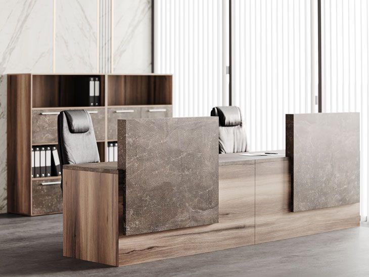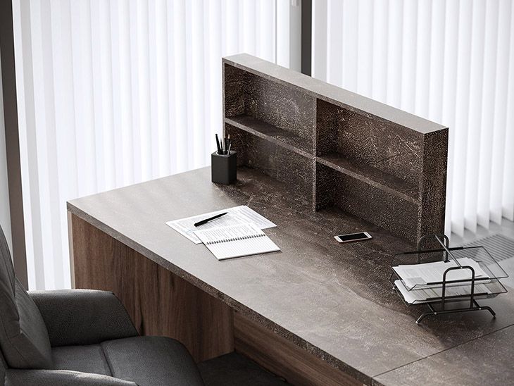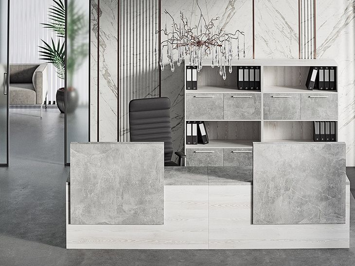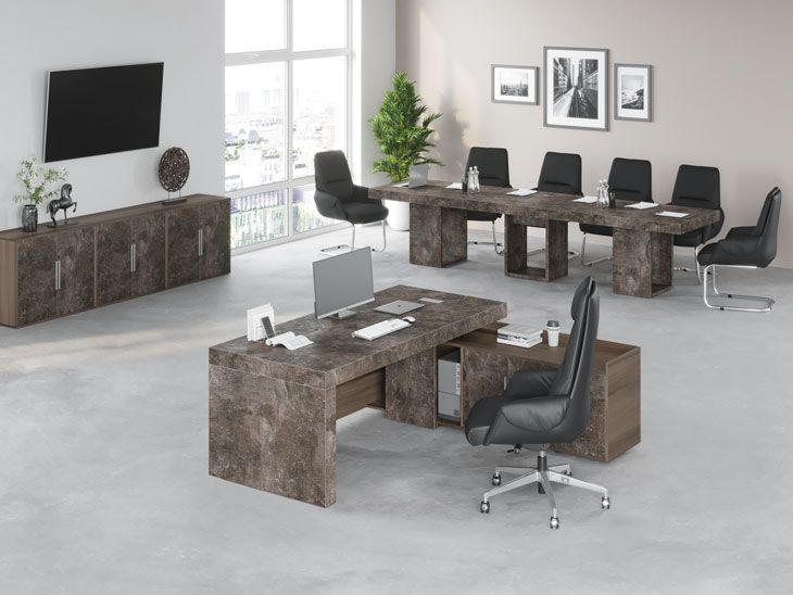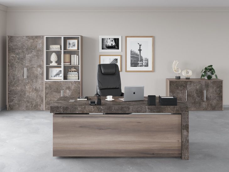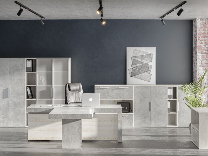 Кабинет руководителя B-tone — это стильное и функциональное решение для офиса. Он выполнен из высококачественного ЛДСП, что обеспечивает прочность и долговечность конструкции. Покрытие ламинат. Толщина столешниц 100 мм., толщина опор 100 мм. /32 мм. Толщина топов тумб и каркасов 16 мм. В столешницах встроенные кабель-каналы. Гарантия 18 месяцев.