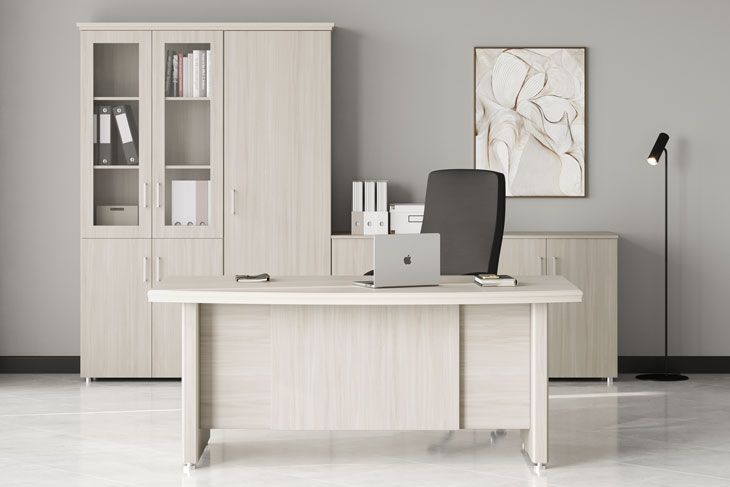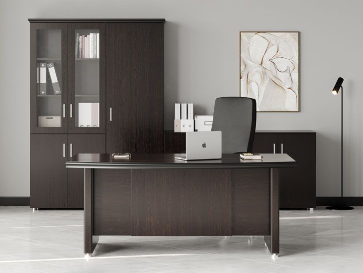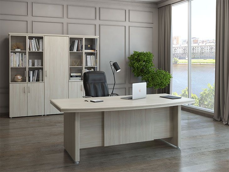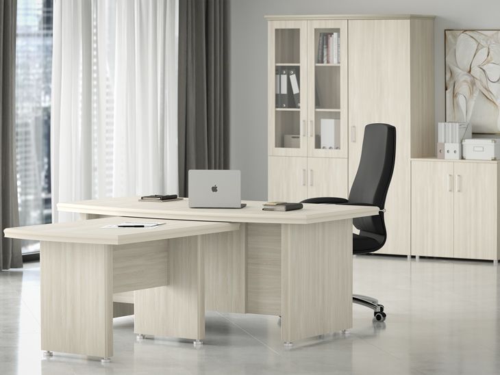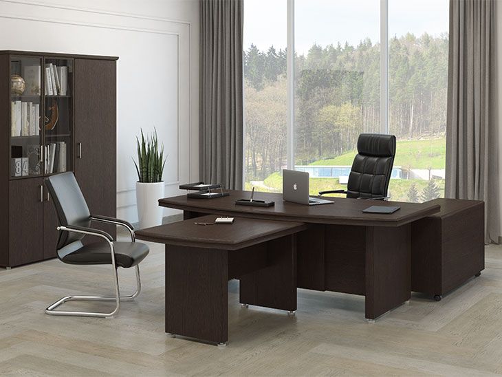 Кабинет руководителя Boston — это стильное и функциональное решение для офиса. Он выполнен из высококачественного ЛДСП и МДФ, что обеспечивает прочность и долговечность конструкции. Столешницы толщиной 48 мм., топы тумб толщиной 24 мм., топы шкафов МДФ 40 мм. Каркасы 16 мм. Верхний ящик тумб оснащён замком для сохранности документов и личных вещей. Регулируемые опоры позволяют компенсировать неровности пола и обеспечивают устойчивость мебели. Гарантия 18 месяцев.