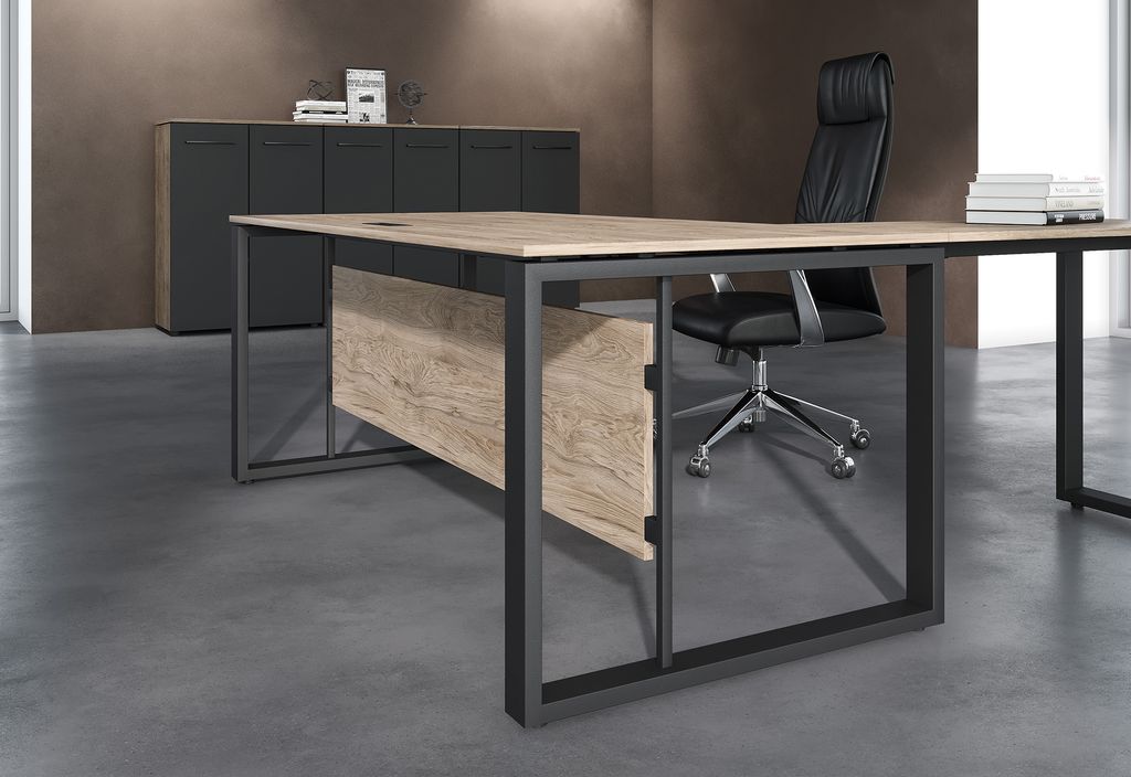 Цена указана за минимальный комплект: Стол руководителя EST 169M Кария Пальмира/Антрацит 1600х900х750 ENIO