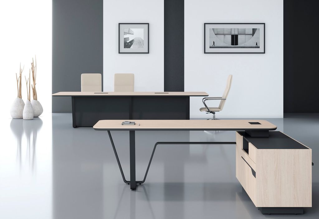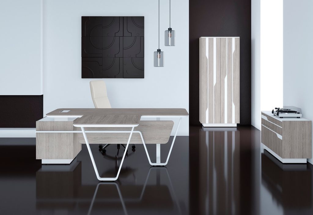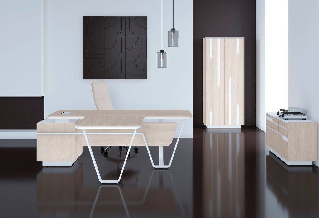 Кабинет LINE из серии Skyland отличается эффектным футуристическим дизайном. В его оформлении смелые линии сочетаются с мягкими оттенками, создавая гармоничный баланс. При изготовлении мебели используется итальянский шпон дуба и металлокаркас, покрытый специальной эмалью с эффектом «муар». Это придаёт кабинету утончённый и привлекательный вид. Система «Push-to-open» позволяет отказаться от лицевой фурнитуры на фасадах. Благодаря этому дизайн мебели выглядит современно и минималистично. Кабинет LINE — это идеальное сочетание стиля, функциональности и комфорта. Он создан для независимых и творческих людей, которые ценят премиальные материалы и нестандартные решения.