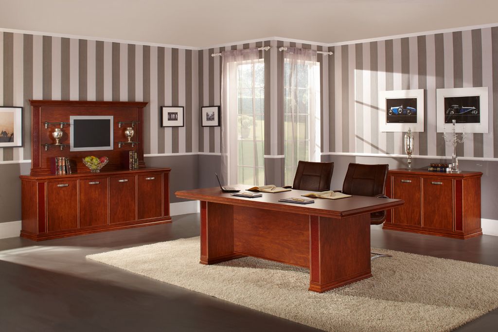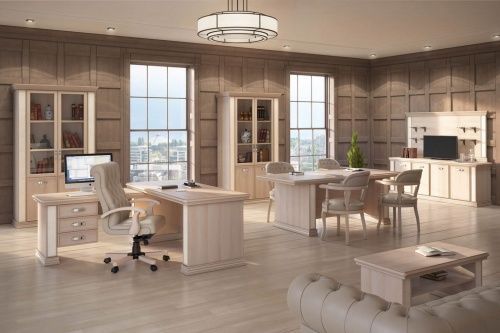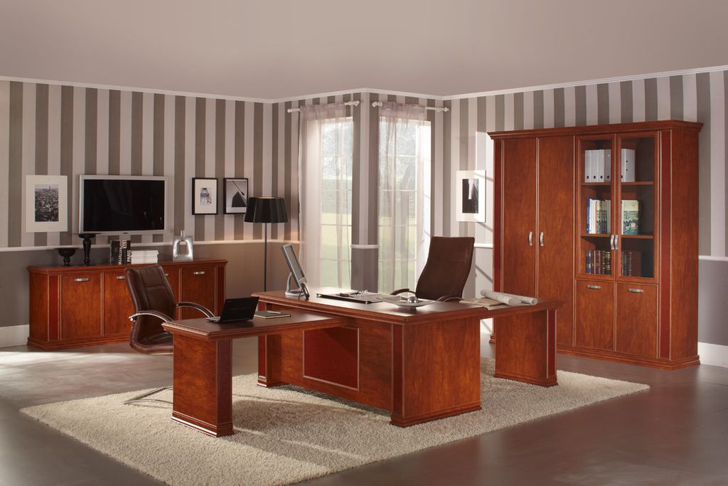 Классический кабинет руководителя Porto - мебель, которая радует своего владельца каждый день. Эта модель разработана итальянским дизайнером Marco Bortolin (Марко Бортолин). Мебель с фигурными бордюрами, карнизами и цоколями, а в Porto еще есть декоративные вставки под кожу с крокодиловым тиснением. Эти детали подчёркивает статус уверенного в себе, респектабельного и надежного владельца. Кабинет PORTO представлен в изысканных цветах - светлом дубе, тёмном Rover cafe и благородном орехе классик. Стол руководителя можно дополнить брифингом, боковой приставкой, одной или двумя подвесными тумбами. Большая греденция может использоваться как с панелью, где вы можете поместить телевизор, а на стеклянные полки поставить любимые предметы декора, так и без панели, в качестве низкого шкафа. Кабинет одинаково хорошо смотрится как в офисе, так и в качестве домашнего кабинета.