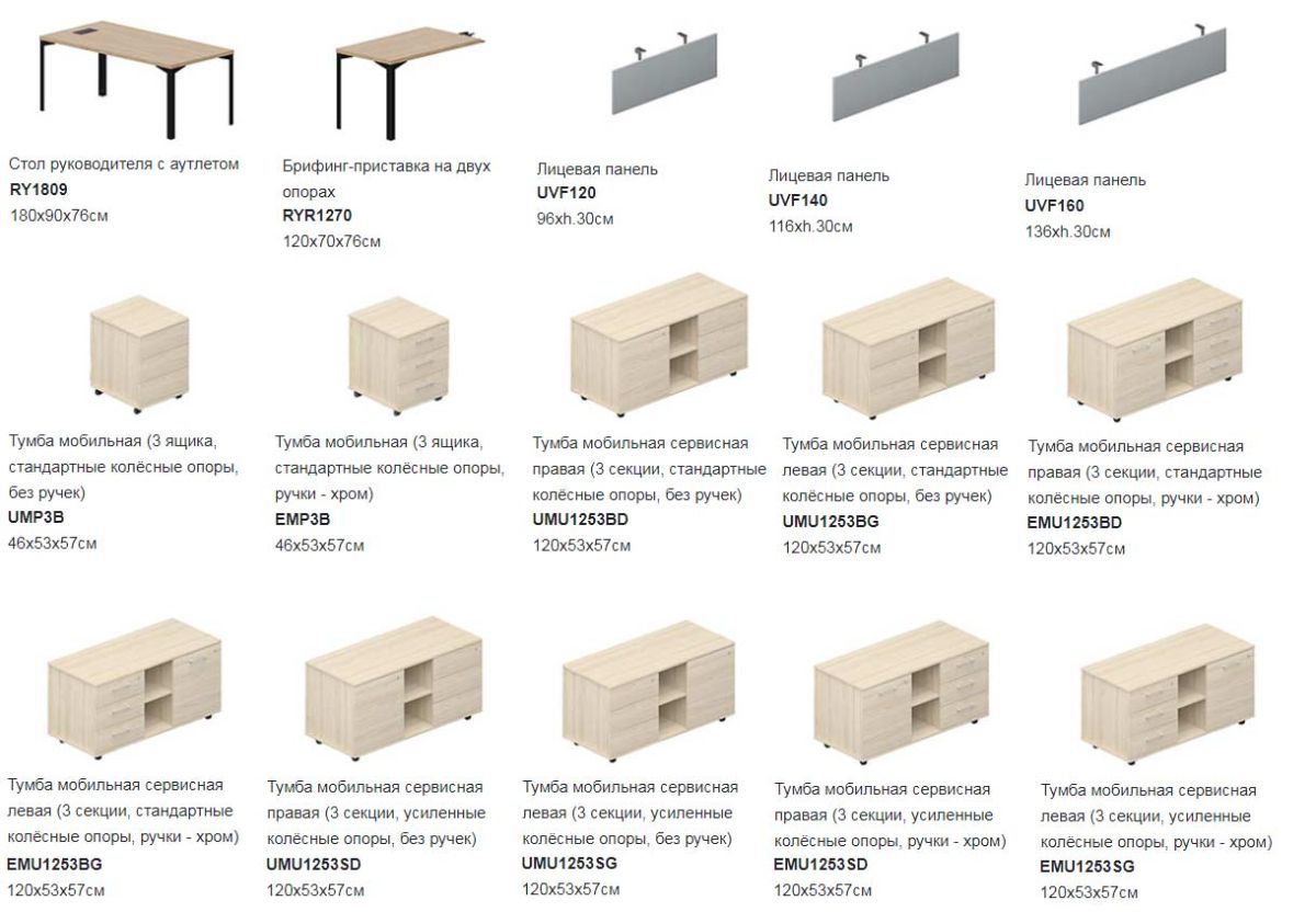 Цена указана за минимальный комплект: Стол руководителя с аутлетом RY1809 180х90х76см.