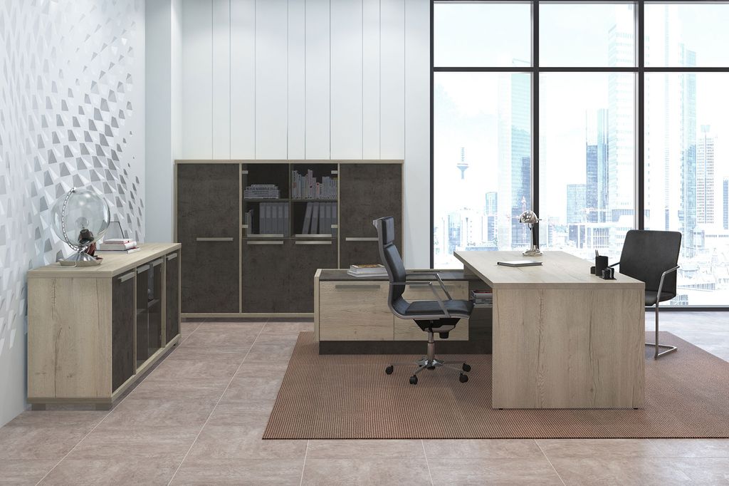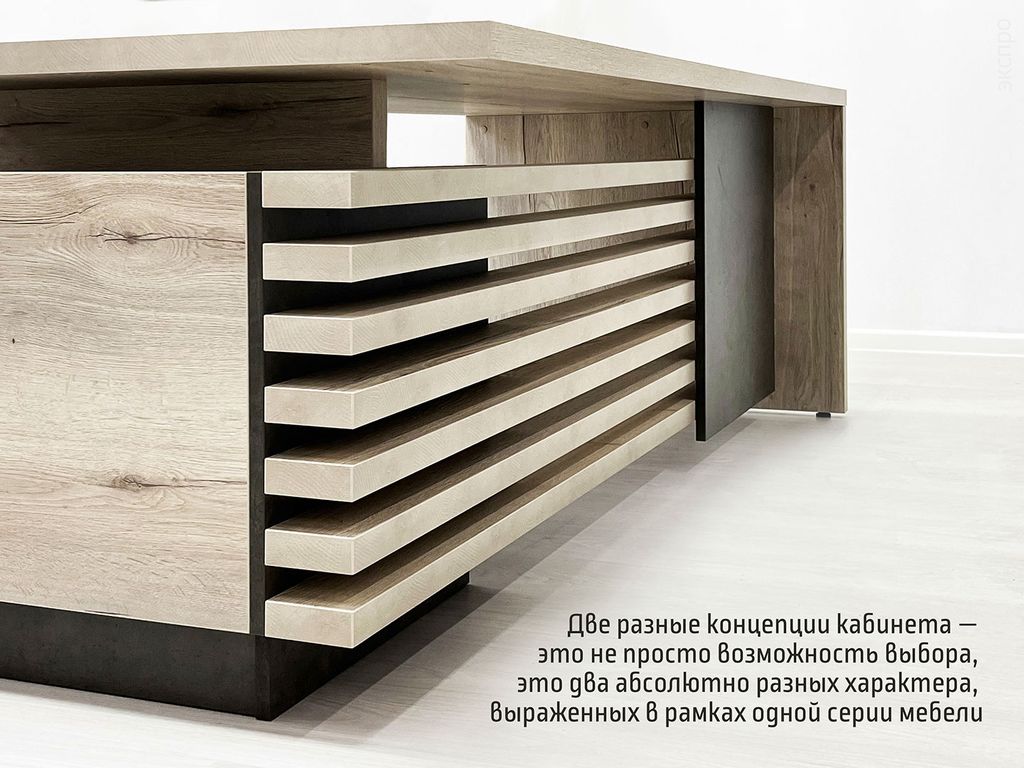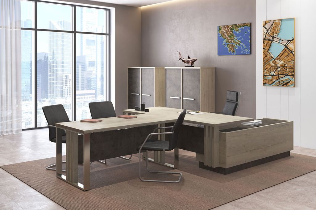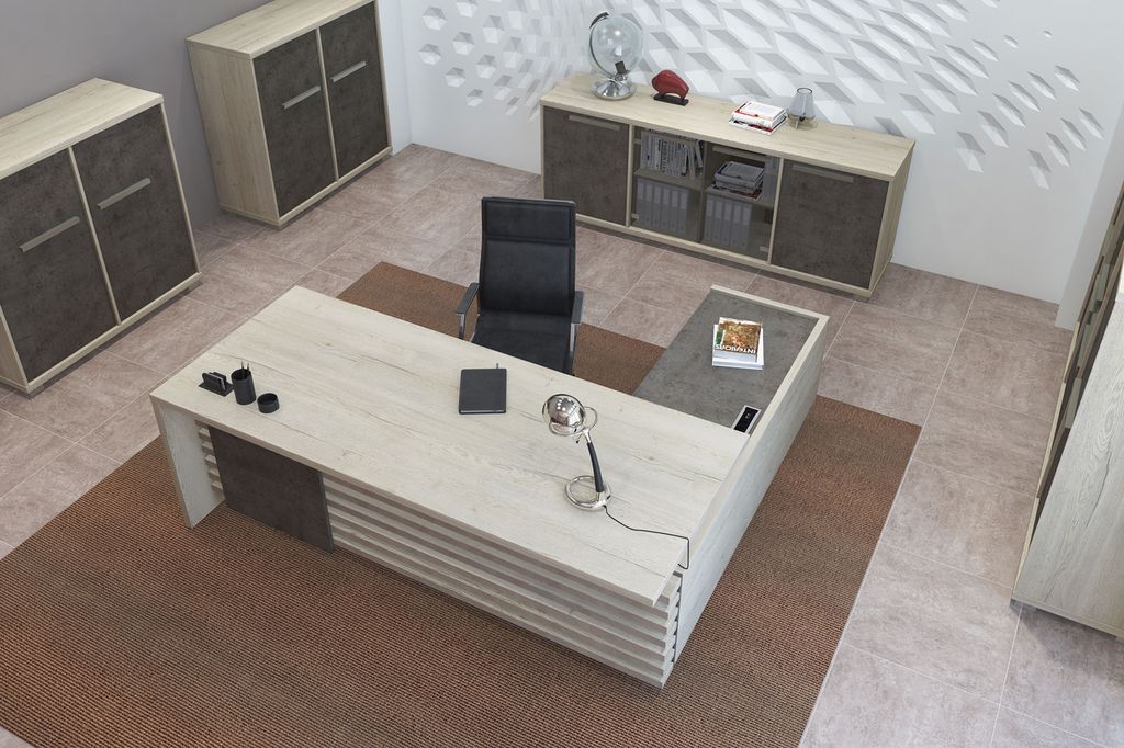 Металлические опоры стола выполнены из нержавеющей стали, что придает им прочность и устойчивость. Трубы сечением 80x20 мм гарантируют стабильную конструкцию, способную выдерживать значительные нагрузки.Каркасы тумб, шкафов и фасады изготовлены из ЛДСП толщиной 18 мм с кромкой ABS 2 мм. Это обеспечивает прочность и долговечность конструкции, а также придает мебели элегантный и современный вид. Мебель Vestar (Вестар) – это отличный выбор для офисного кабинета руководителя, сочетающий в себе стильный дизайн, функциональность и прочность. Наша коллекция Vestar обеспечит комфортное и эффективное рабочее пространство, отражая престиж и профессионализм вашего руководителя.