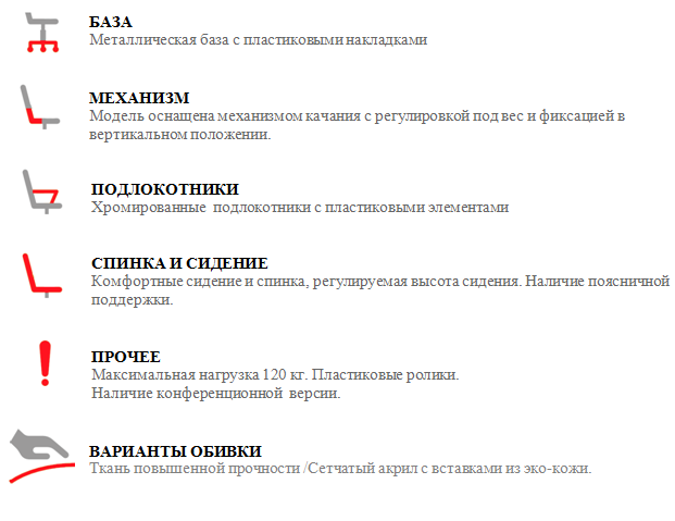 Эргономичное кресло СТК-ХН-6125 отличается от других моделей конструктивной особенностью спинки. Она большая, повторяет изгибы тела и дополнительно оснащена подголовником, что позволяет в полной мере расслабить мышцы спины и шеи, а значит - отдохнуть работая. Спинка изготовлена из сетчатого акрила - это способствует усиленной вентиляции. Мягкое сидение с уплотненным поролоновым слоем под тканью-сеткой не позволит вам испытывать неприятные ощущения и онемения тела. Прямоугольные пластиковые подлокотники будут постоянно поддерживать ваши руки, не давая им устать. Хромированная крестовина является надежной опорой. Под ваши параметры изделие быстро и просто подстроится благодаря функции газлифт и механизму качания с регулировкой под вес. Такие кресла можно размещать в больших офисах открытого типа, где важен не только комфорт, а и простота конструкции.