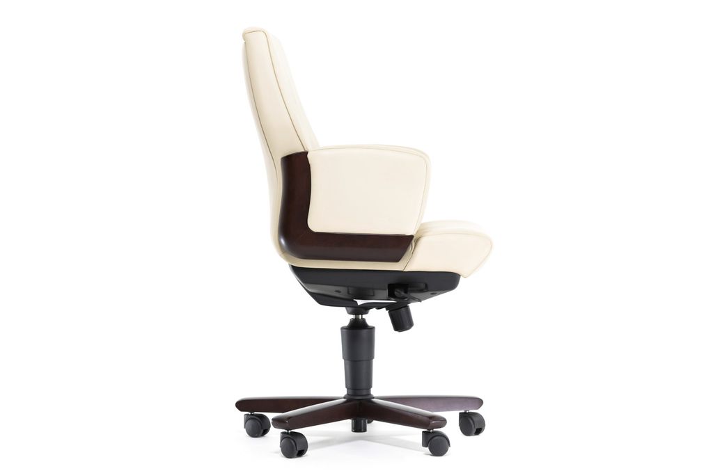 Dico — кресло, предназначенное для солидных классических кабинетов. Конструкция и форма мягких обитых подлокотников со вставками из массива дерева перекликаются с основательностью крестовины, а большой подголовник является логичный завершением образа широкого комфортного сиденья. Настройка высоты сиденья и кнопка фиксации механизма качания компактно встроены в каркас. Каждая деталь имеет значение и подчеркивает солидность кожаного кресла Dico.