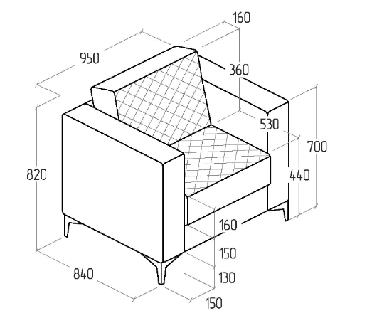 Каркас из ДСП, ДВП и деревянного бруса обеспечивает прочность и устойчивость конструкции, а мягкое сиденье с наполнителем из ППУ высокой плотности ST 2536 гарантирует комфорт даже при длительном использовании. Декоративная ромбовидная стёжка на спинке и сиденье придаёт креслу премиальный вид, подчеркивая внимание производителя к деталям.