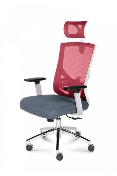Артикул: Кресло офисное Гарда вишневая сетка/белый пластик/серая сидушка