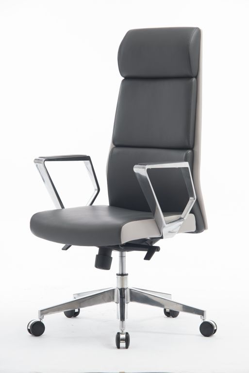 Ультрамодный "итальянский" дизайн. Отделка высококачественной экокожей двух оттенков серого цвета. Высокое качество материалов и исполнения. Механизм качания мультиблок, выдерживающий нагрузку до 150 кг, с фиксацией наклона в любом положении.