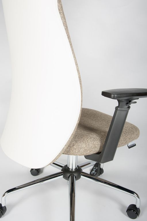 Кресло МИЛАН имеет оригинальный итальянский дизайн. Безукоризненное исполнение, высококачественные материалы. Удобная анатомическая форма. Механизм качания топ-ган с регулировкой жесткости. Кресло обтянуто износостойкой дизайнерской тканью типа "рогожка". Подлокотники регулируются по высоте (6 положений), выполнены из упругого, приятного на ощупь пластика. Накладка на спинку выполнена из высококачественного пластика цвета слоновая кость (светлый тон). Оригинальная крестовина трубчатой формы переменного сечения из стали, покрытая хромом. Полиуретановые ролики. Хромированный газ-патрон.