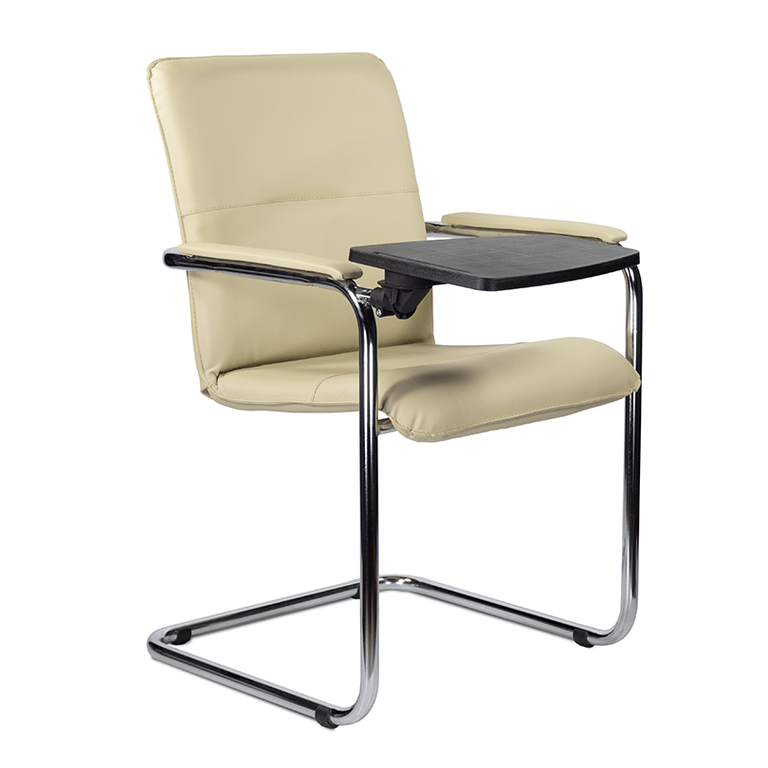 Элегантное кресло для посетителей имеет широкий выбор расцветки обивки кресла, мягкие подлокотники с накладками люкс и хромированный каркас. К креслу прилагается столик, выполненный из пластика. Модель отлично подойдет для конференц-залов, переговорных, актовых залов.