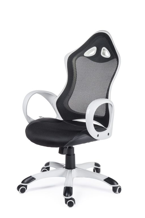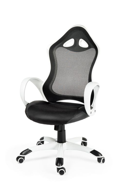 Артикул: Кресло офисное Тесла белый пластик/черная ткань/черная сетка