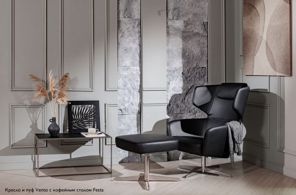 Коллекция Vento – элегантная, логичная и рациональная. Vento поддержит, если вы устали, в нем можно расположиться с ноутбуком или присесть для общения с гостями. Кресло-реклайнер в натуральной черной коже дарит возможность стать немного эгоистичным. Место, где невольно начинаешь искать новые пути и нестандартные решения. Место, где думаешь о себе.