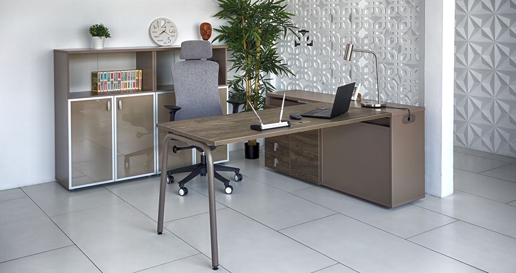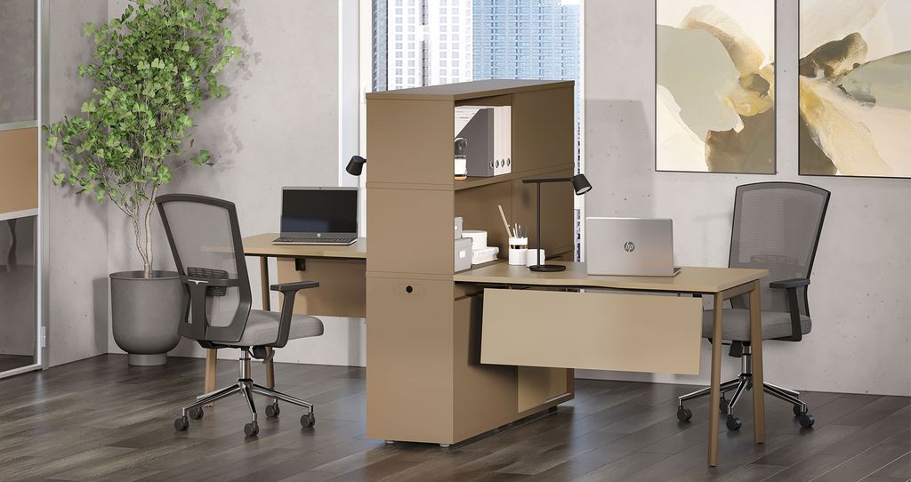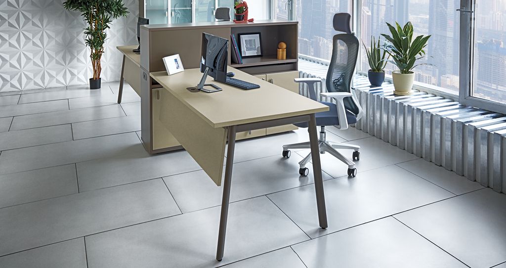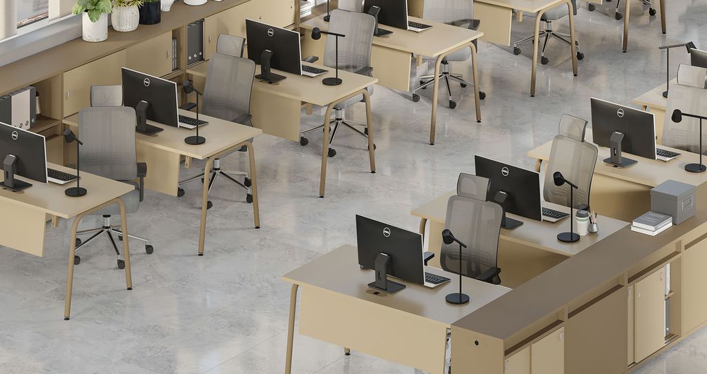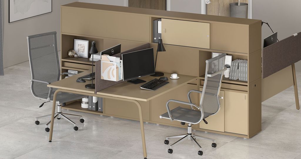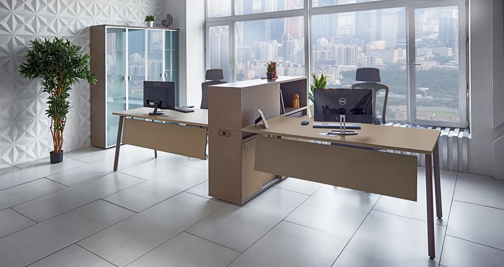 Мебель для персонала ESTETICA - базовый вариант недорогой и качественной мебели для Вашего офиса. Особенностью данной серии мебели являются два варианта опор из круглой или плоскоовальной трубы, придающие лёгкость и эстетичность столам. Уникальным решением стали специально разработанные для этой серии металлические заглушки для кабель-каналов двойного открывания. Благодаря продуманной конструкции ниш шкафов, кабель каналам и встроенным лючкам данная система позволяет облегчить подключение рабочих мест к электрическим и интернет-сетям любого офиса. Возможность комбинировать многофункциональные опорные шкафы и тумбы со столами позволяет грамотно спланировать абсолютно любое офисное пространство.