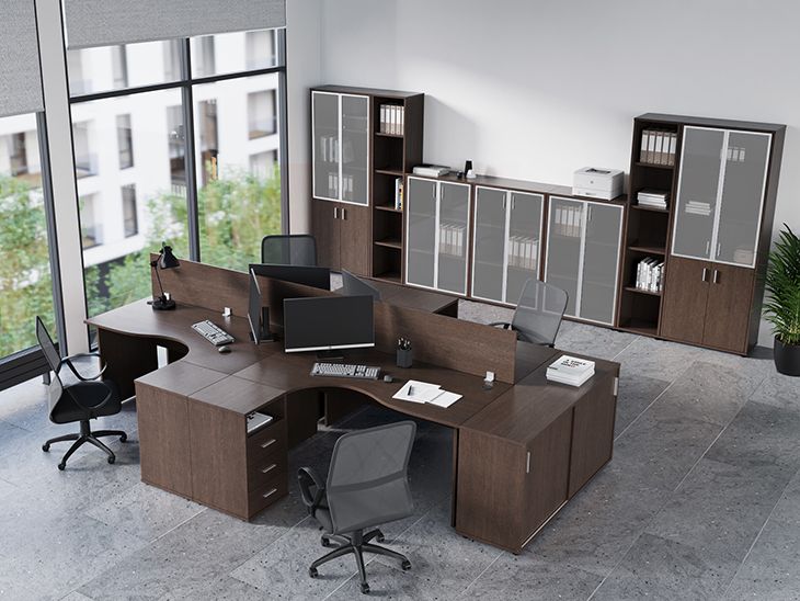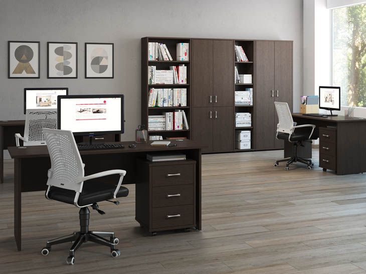 Мебель для персонала Trend — это стильное и функциональное решение для обустройства рабочего пространства. Данная серия мебели выполнена из выскокачественного ЛДСП, что обеспечивает прочность и долговечность конструкции. Столешницы и опоры имеют толщину 22 мм, каркасы — также 22 мм. Фасады выполнены из материала толщиной 16 мм. Столешницы имеют две заглушки под кабель-канал. Дверцы шкафов могут быть оснащены прозрачным стеклом толщиной 5 мм и сатинированным стеклом в раме. Задние стенки шкафов и дно ящиков выполнены из ДВП толщиной 3,2 мм. Ящики тумб оснащены роликовыми направляющими, а верхний ящик — замком. Кромка мебели выполнена из ПВХ толщиной 2 мм и 0,4 мм. Регулируемые опоры обеспечивают устойчивость и надёжность конструкции. Гарантия на мебель составляет 18 месяцев.