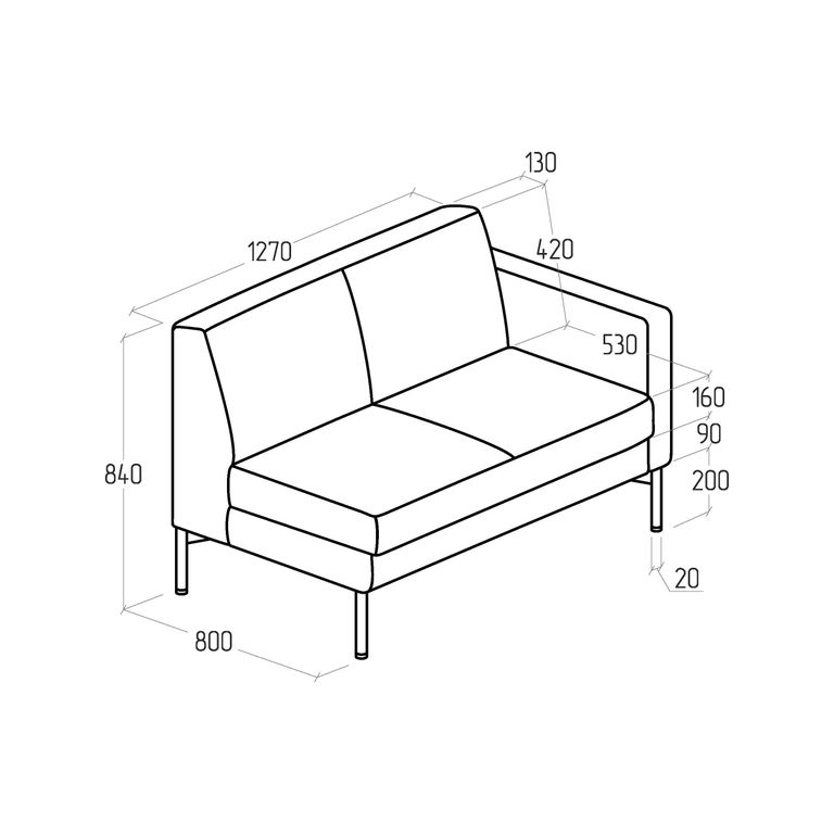 Модуль Everprof Gamma с подлокотником двухместный левый Экокожа Черный