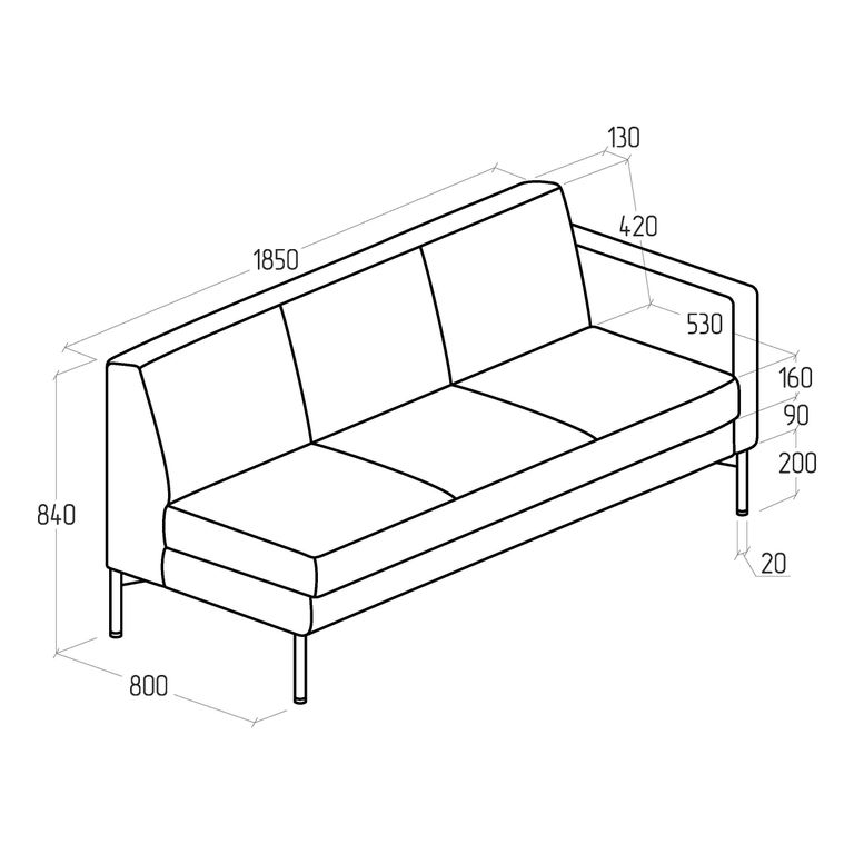 Модуль Everprof Gamma с подлокотником трехместный левый Экокожа Черный