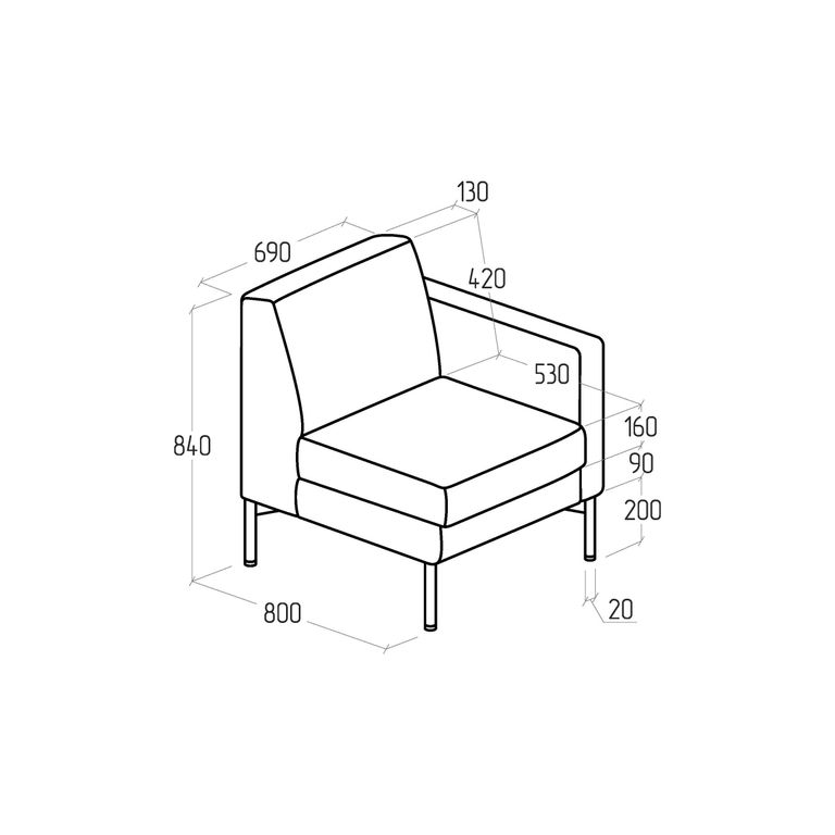 Модуль Everprof Gamma с подлокотником одноместный левый Экокожа Черный
