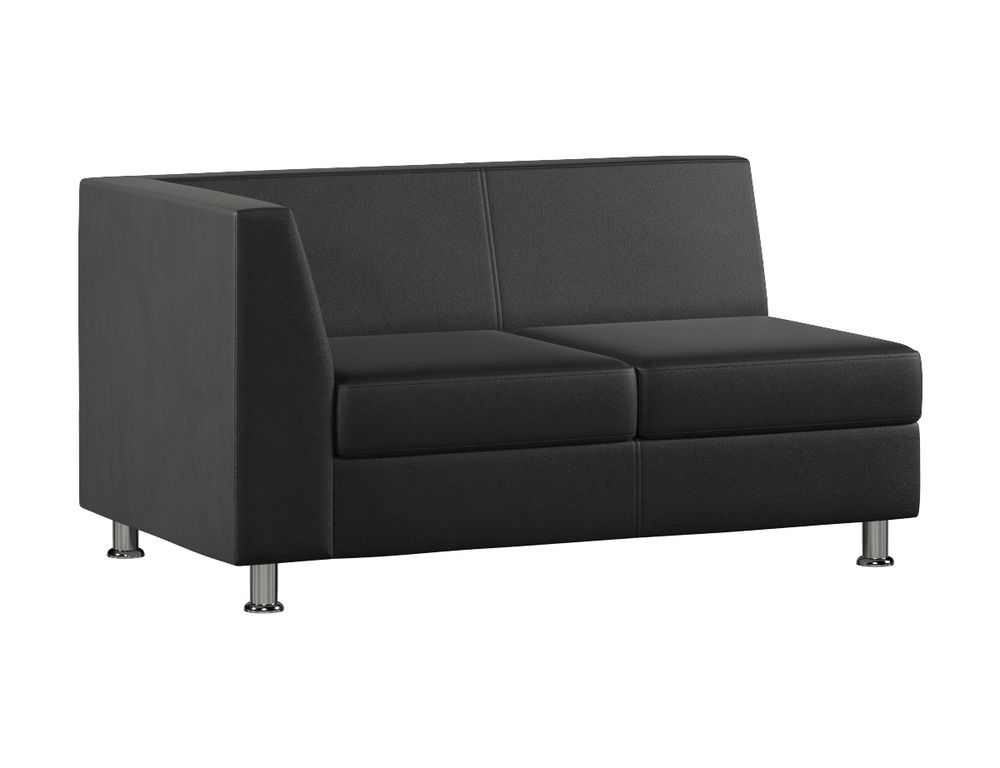 Обивка выполнена из износостойкой экокожи Pegasso. Материал устойчив к истиранию, легко очищается от загрязнений и хорошо переносит регулярную влажную уборку. За счёт этого модель по праву можно отнести к категории модуль диванный экокожа Pegasso черный: она одновременно выглядит солидно и остаётся практичной при интенсивной эксплуатации. Глубокий чёрный цвет подчёркивает геометрию модуля и выгодно контрастирует с хромированными опорами.