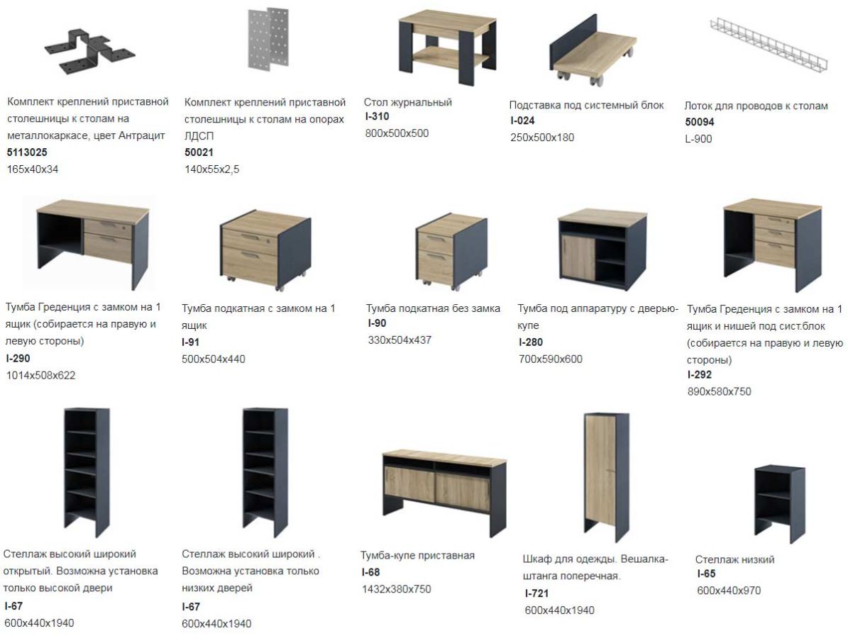 Цена указана за минимальный комплект: Стол письменный 1200х750х750.