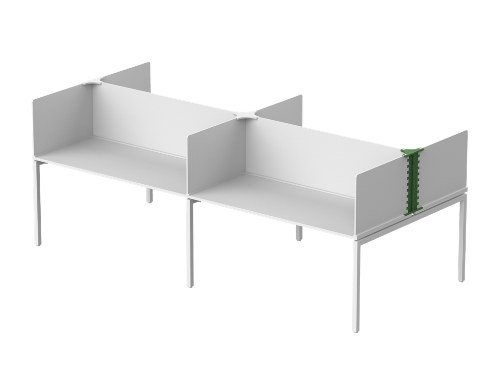 Специальная система позволяет оборудовать разделительными экранами сразу несколько рабочих мест, составленных в бенч-компоновку. При этом предлагается несколько решений извечной проблемы с боковыми экранами — от небольшого экрана глубиной по габариту столешницы до экрана-ширмы, полностью закрывающего рабочее место сбоку. Бенч-боксы совместимы со всеми популярными коллекциями офисной мебели, а так же могут быть изготовлены по вашим размерам для любой бенч-компоновки.