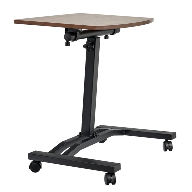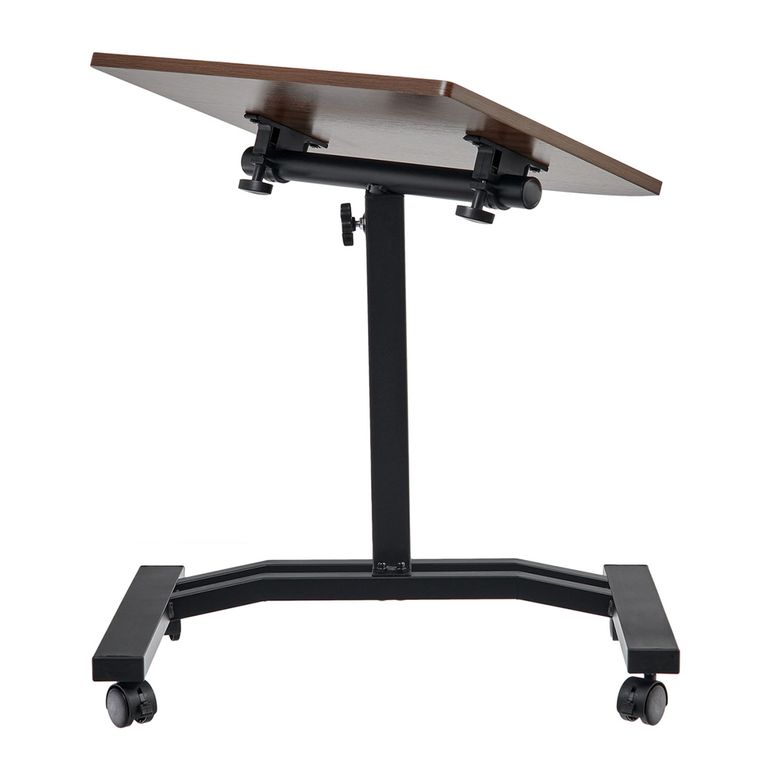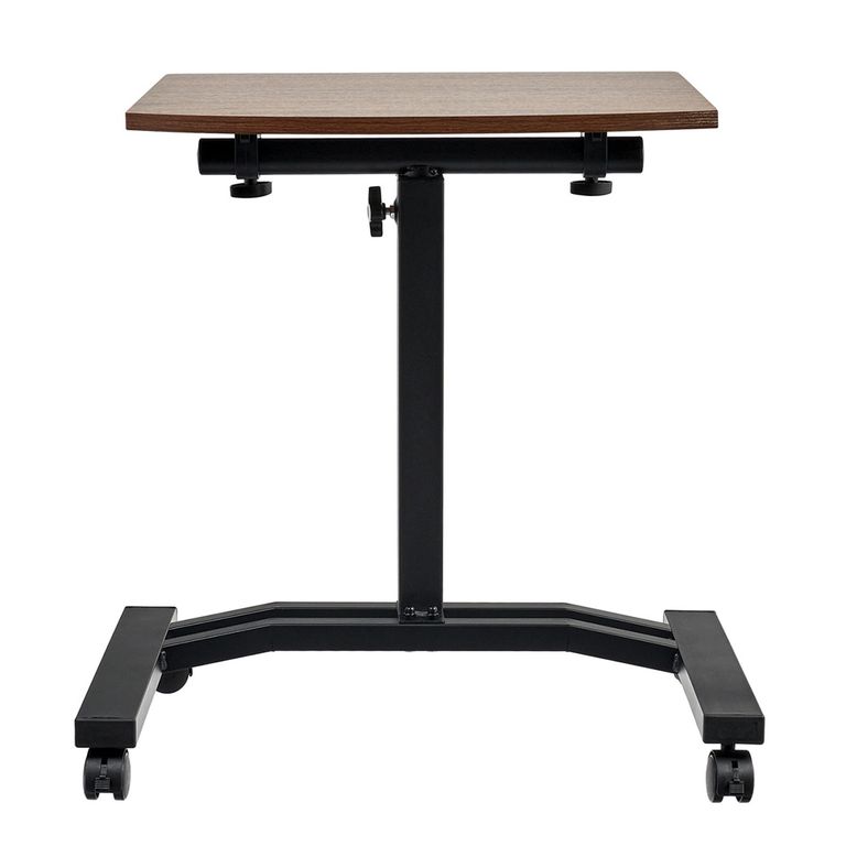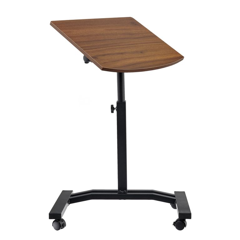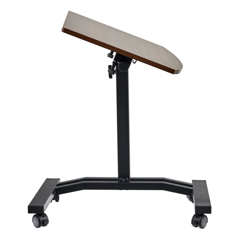 Регулируемый по высоте стол с колесиками (портативный компьютерный стол). Материал: МДФ, металл, полипропилен. Цвет: Тёмное дерево, серый. Размер: 48 x 40 x 52-84 см. МДФ 15 мм c ПВХ кромкой. Комплектация: столешница, ножка, ножка-основание, колёса, набор для сборки, инструкция