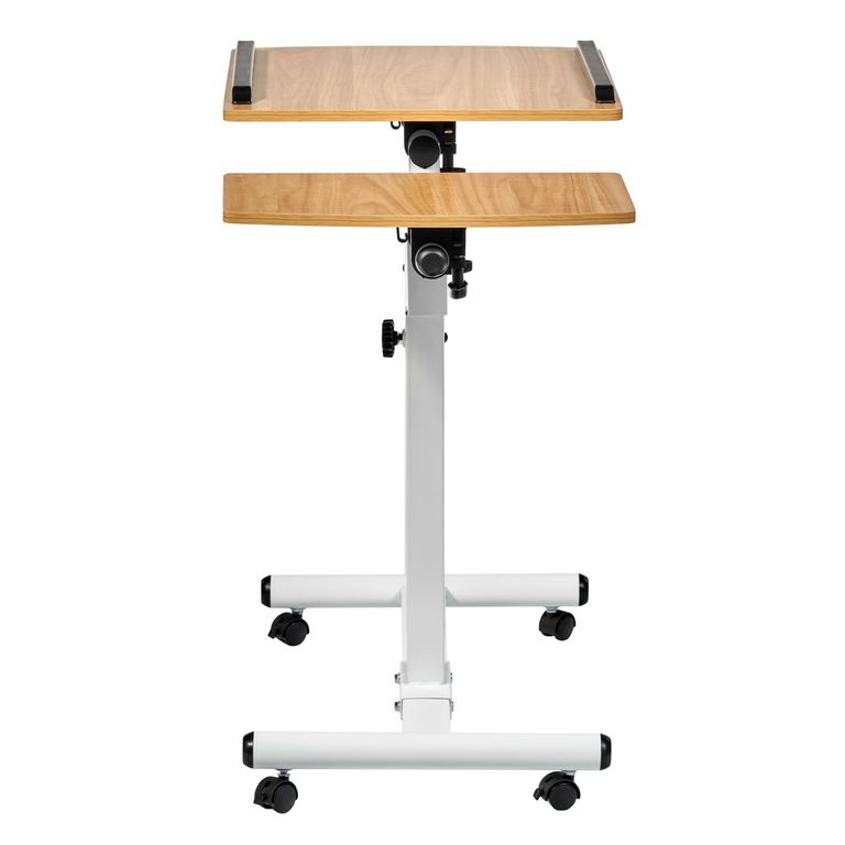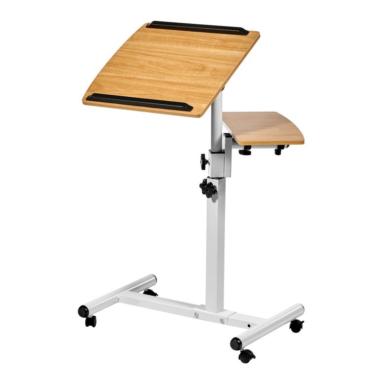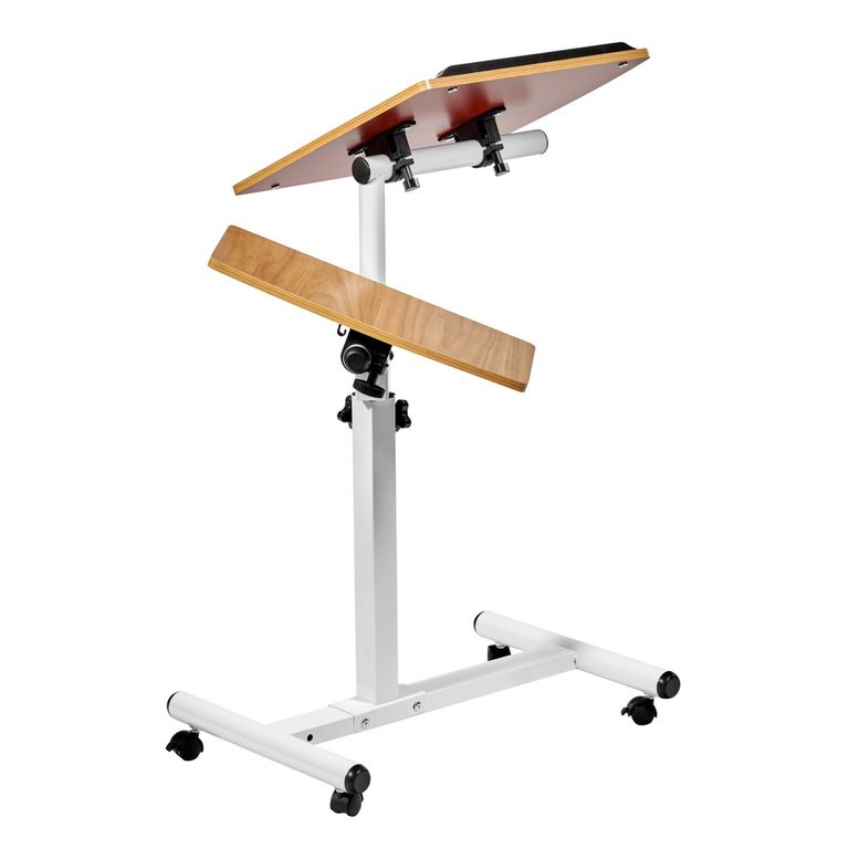 Материал: МДФ12 мм, металл 0.7мм, пластик. Кромка ПВХ 0,6 мм. Размер: 60x40x62-96см. Толщина столешницы: 12мм. Размер большой столешницы: 40х40см. Размер малой столешницы: 20х40см. Вес: 4,5кг. Максимальная нагрузка: 40кг. Регулировка наклона. Регулировка высоты от 62 до 96 см. 4 пластиковых колеса