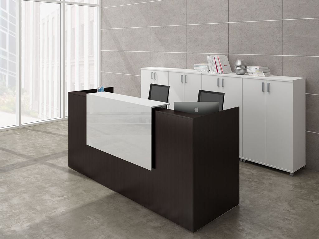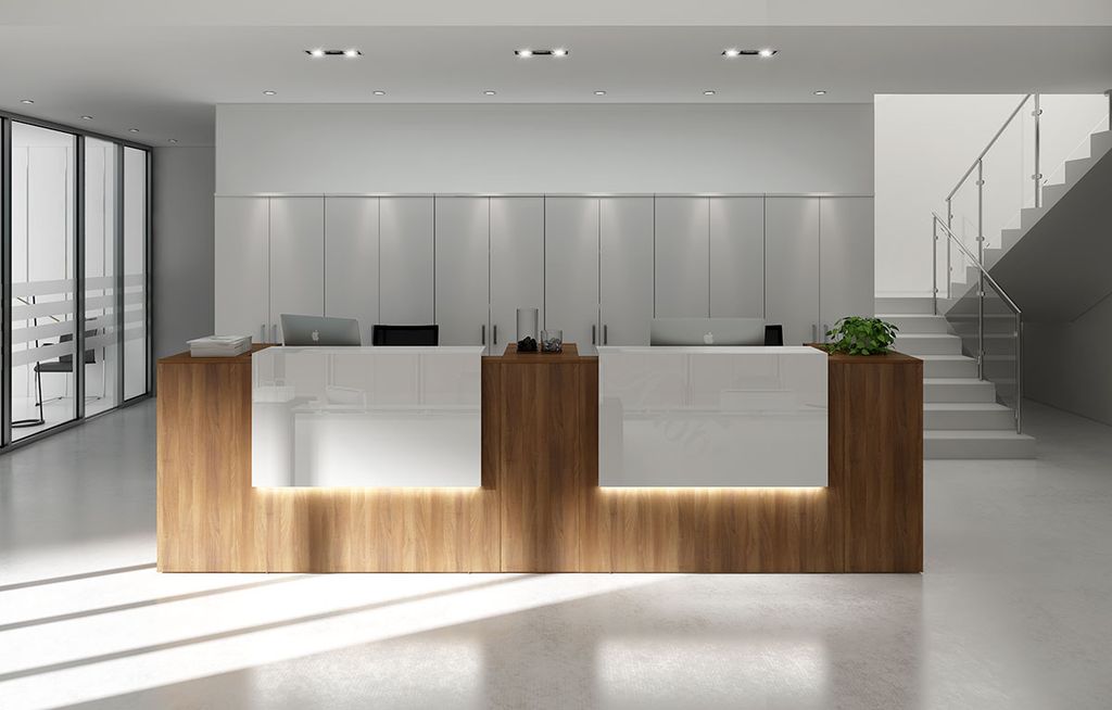 Офисная мебель для приемных LOUNGE - яркий представитель минимализма. Прямые строгие линии, в сочетании с контрастными элементами фартуков, позволяют получить строгий и лаконичный дизайн. Возможно осуществить декоративную светодиодную LED-подсветку фартука для любой модели. Это позволяет визуально выделить ресепшен для офиса на фоне остальных элементов мебели, придать ему индивидуальный дизайн и подчеркнуть статус компании.