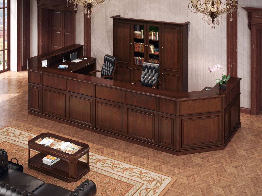 Стойки ресепшн коллекции NEW INTER украсят пространство приемной в сдержанной эстетике, присущей классическому стилю. Благодаря наличию модульных элементов можно сконструировать стойку нужных размеров и конфигурации: прямую, угловую, П-образную. Коллекция из шпона и массива создана поражать и удивлять с первых минут. Благородное изящество линий, неброская красота и лаконичность оттенков — серия впишется в любой стиль от классического до ультрасовременного.