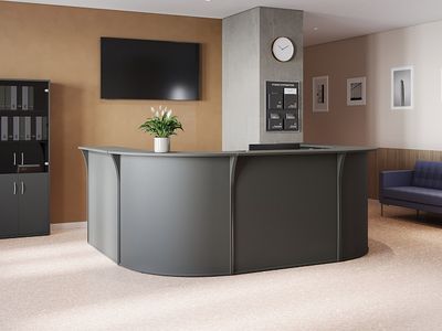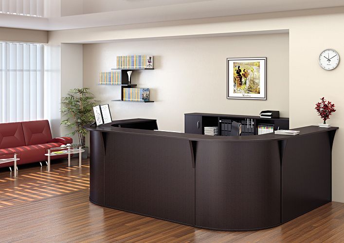 Стойка ресепшн Riva – это стильное и функциональное решение для оформления зоны приема, подчеркивающее статус и имидж вашей компании. Элегантный и лаконичный дизайн удачно сочетается с высококачественными материалами, обеспечивая как эстетическую привлекательность, так и практичность.