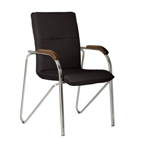 Samba – стул с комфортными сиденьем и спинкой на хромированной металлической раме. Он прекрасно впишется как в офисный интерьер, так и в интерьер любых предприятий сферы обслуживания: салонов, агентств, студий и т. д. Металлические хромированные подлокотники имеют накладки из натурального дерева, они долговечны и удобны в эксплуатации. Обивка стула выполнена из высококачественной искусственной кожи с чрезвычайно высокой для такого вида стульев изностойкостью - 30 000 циклов Martindale. Покупая данную модель, Вы получаете долговечный качественный стул с высокой оценкой по показателю цена/качество!!!